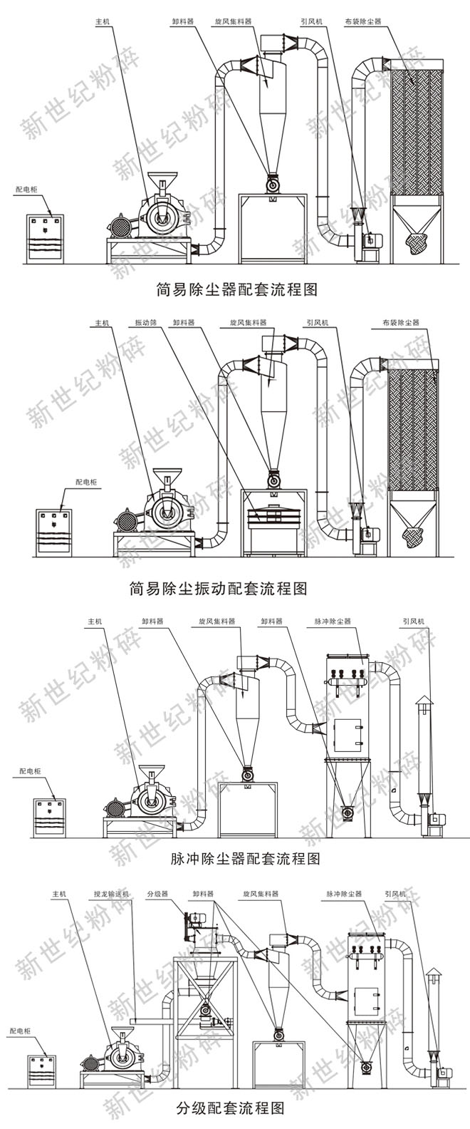 9、粉碎后的物料是從機殼下腔排出,可由布袋直接收集或連接集料(集料分級)裝置收集。